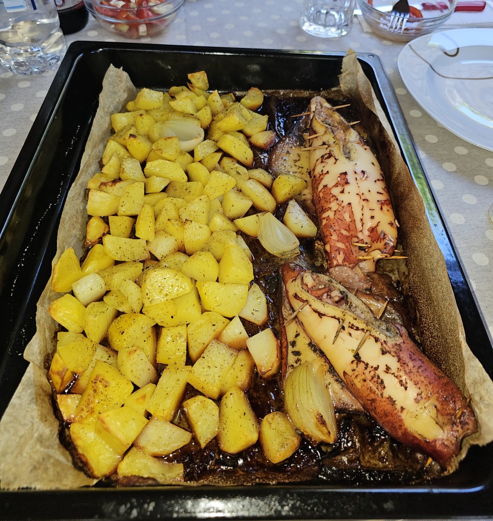 it’s a 5-10 minute walk to the beach where we swam everyday in the warm sea.